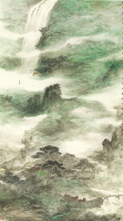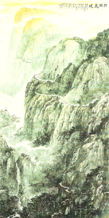 | 云山图 68cm x 136cm | 春瀑渲声 68cm x 136cm | 井冈晨晓 96cm x 180cm | ||